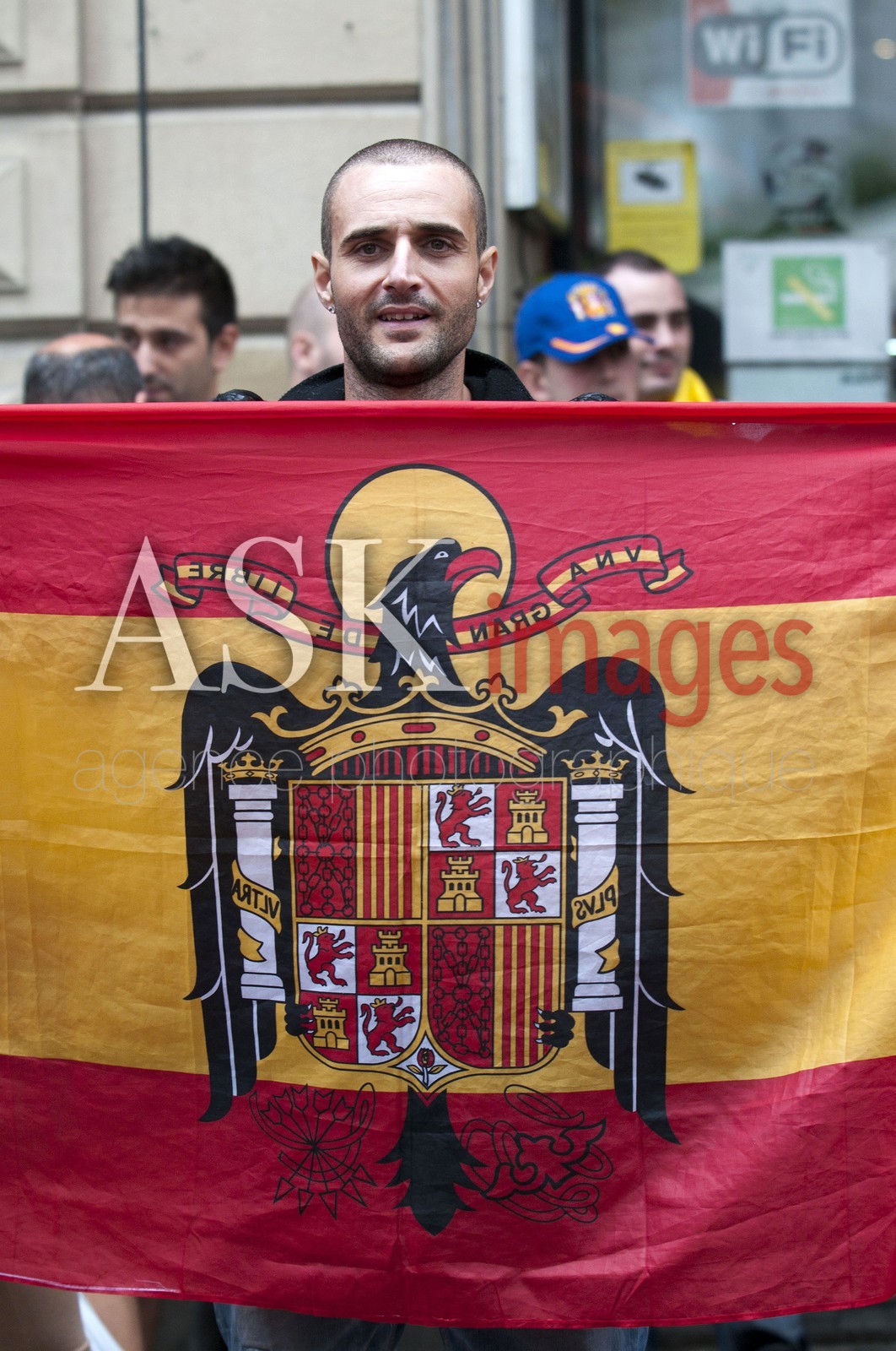 | Description | Barcelona, Spain. 12th Oct, 2014. Demonstrators doing the fascist salute during the Spanish Ultra Nationalism speech. Over 200 spanish ultra nationalist civilians has celebrated in Barcelona, the annual commemoration of October 12th as the Spanish National Day. Hispanic Day is marked by the crisis stalking Spain and the growing demand for independence by the Catalan population. Some thousands of people demonstrated for the union of the Spanish territory. |