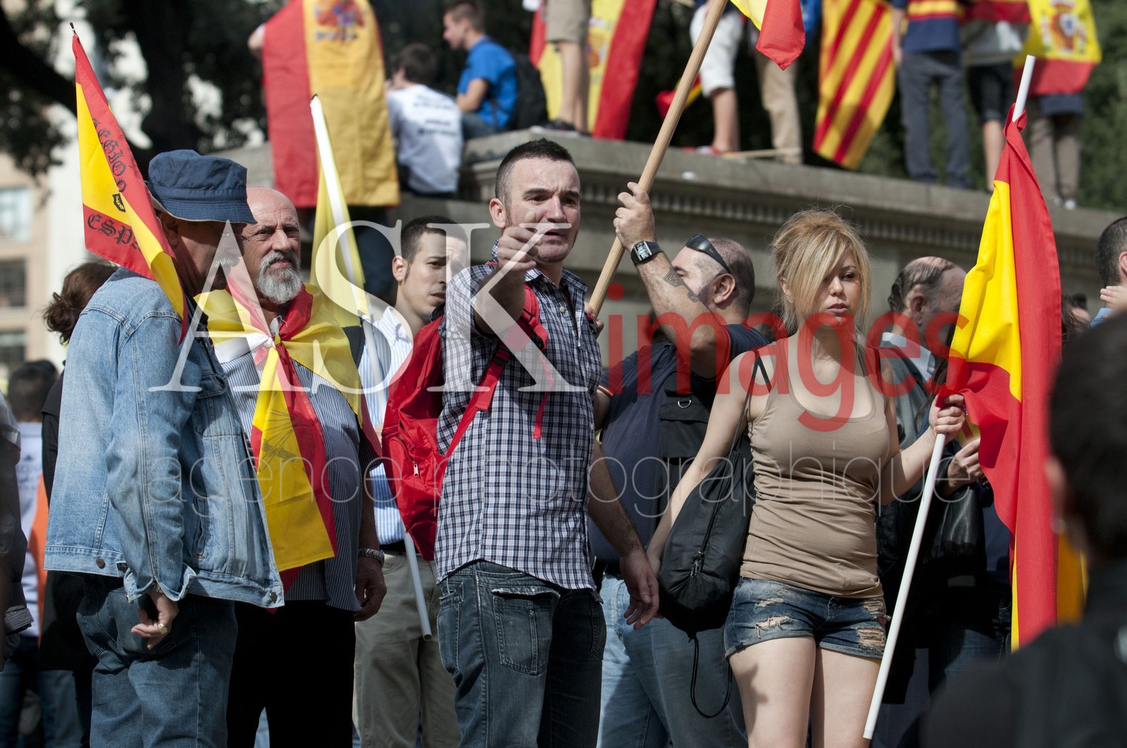 | Description | Barcelona, Spain. 12th Oct, 2014. Demonstrators doing the fascist salute during the Spanish Ultra Nationalism speech. Over 200 spanish ultra nationalist civilians has celebrated in Barcelona, the annual commemoration of October 12th as the Spanish National Day. Hispanic Day is marked by the crisis stalking Spain and the growing demand for independence by the Catalan population. Some thousands of people demonstrated for the union of the Spanish territory. |