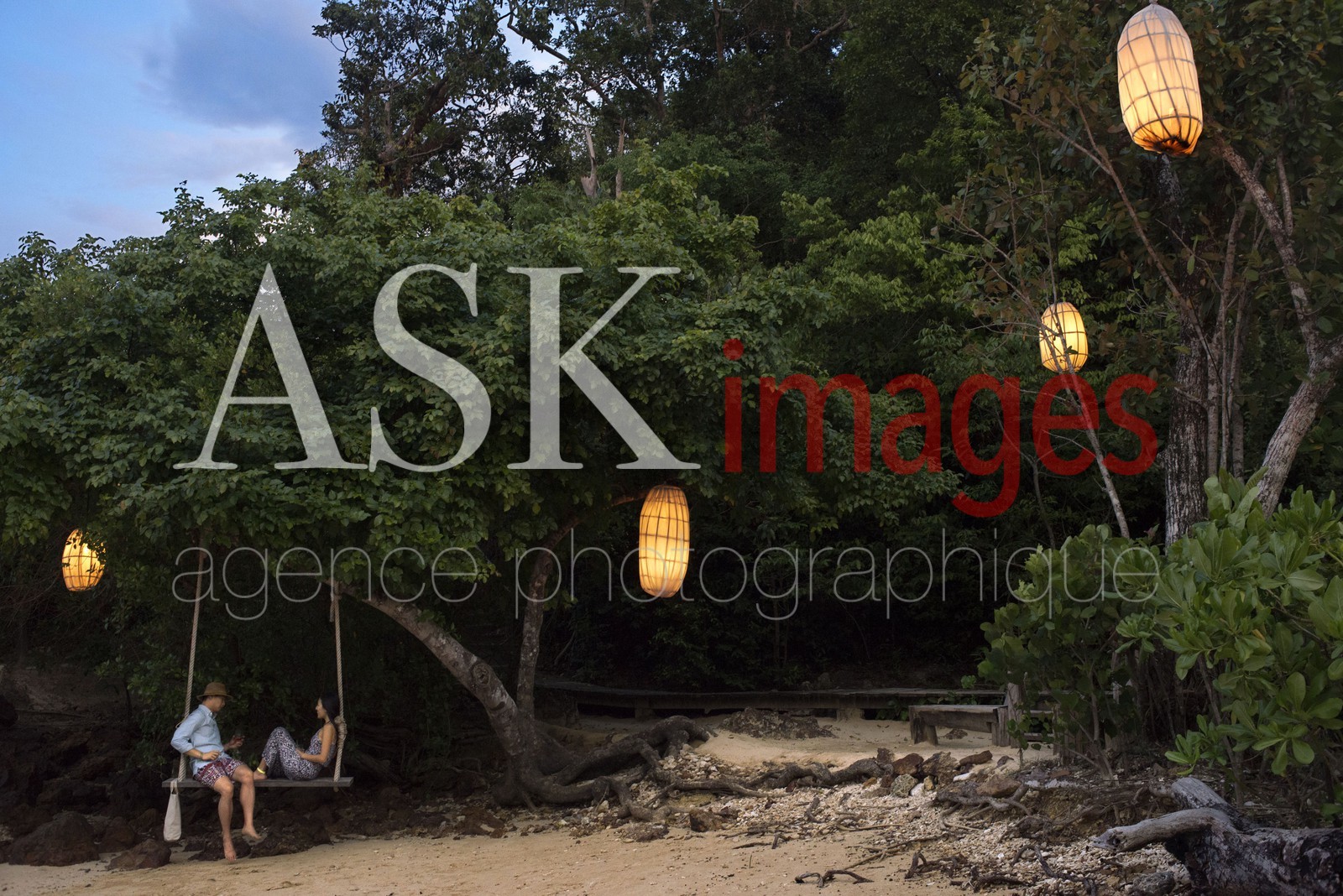 | Description | A couple in a romantic swing in the beach of Six Senses Resort, Koh Yao Noi, Phang Nga Bay, Thailand, Asia. |