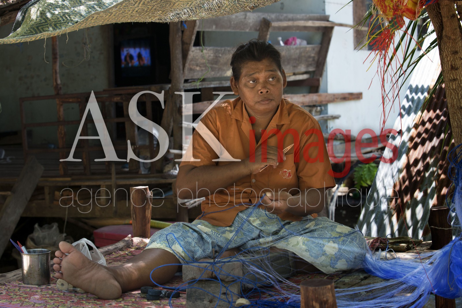 | Description | Fisherman mending their nets. Fishing gypsy village. Koh Mook (Muk) is a small rocky island off the coast of Trang province. On the east side, the island has a long sandy peninsula. Thailand |