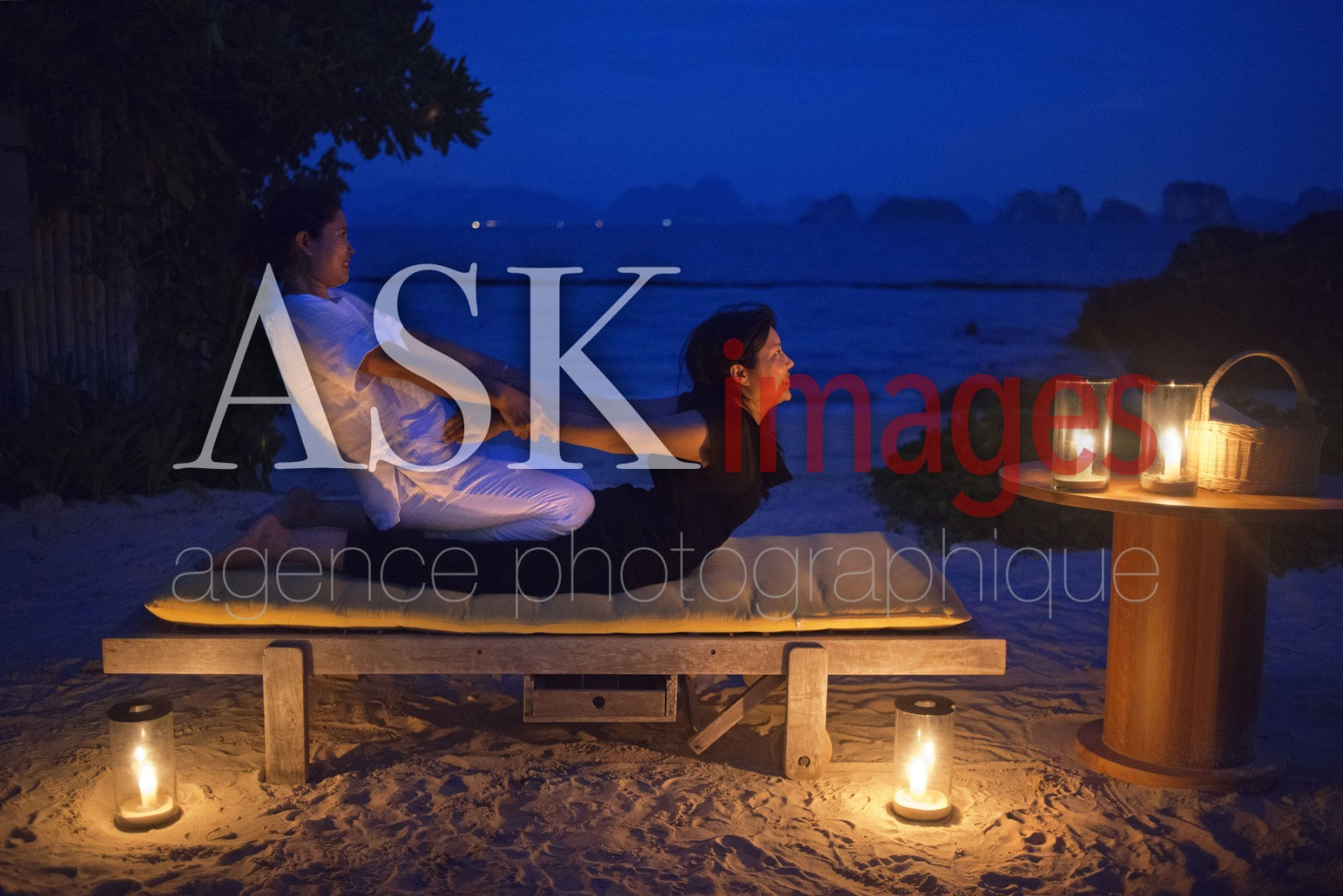 | Description | Doing a thai massage in the beach of Six Senses Resort, Koh Yao Noi, Phang Nga Bay, Thailand, Asia. |