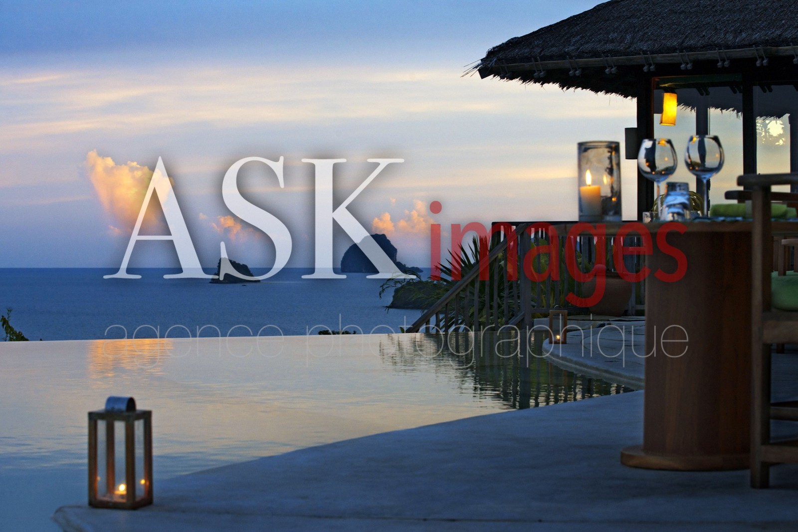 | Description | Six Senses Resort, Koh Yao Noi, Phang Nga Bay, Thailand, Asia. Romantic table in the restaurant near the swimming pool called The Hilltop Reserve in front of the sea. |