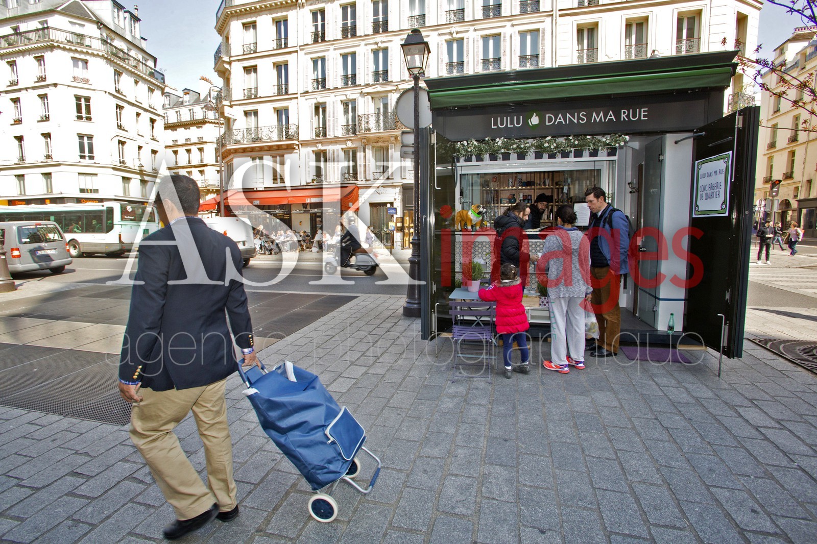 | Description | Paris, le premier kiosque Lulu dans ma rue, service de conciergerie de quartier, place Saint Paul, quartier du Marais. |